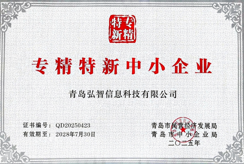 青島弘智信息科技有限公司再度榮膺"專精特新中小企業(yè)"稱號——以創(chuàng)新驅(qū)動發(fā)展,以專業(yè)鑄就卓越